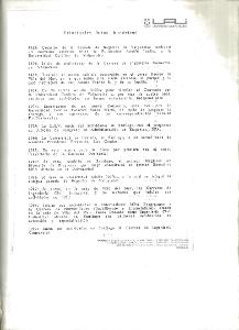 Cronología desde los años 1953 hasta 1977 de la Universidad Adolfo Ibáñez, más Documentos de la Universidad Adolfo Ibáñez entre los años 1988 al 2000, tales como las actas de la primera sesión de la Junta Directiva, la creación del escudo institucional y otros.